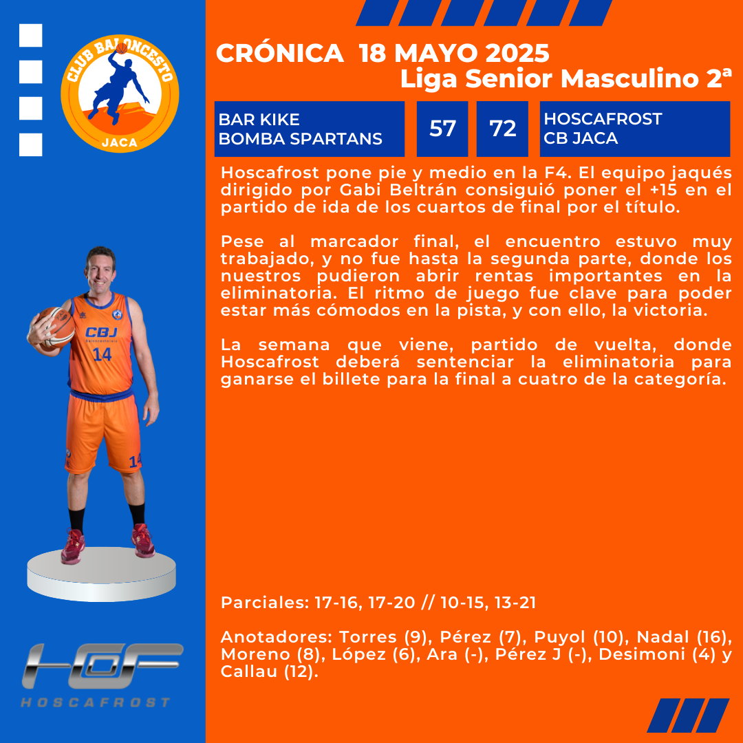 SENIOR MASCULINO - 1/4 FINAL (IDA):BAR KIKE BOMBA SPARTANS 57 - 72 HOSCAFROST CB JACA